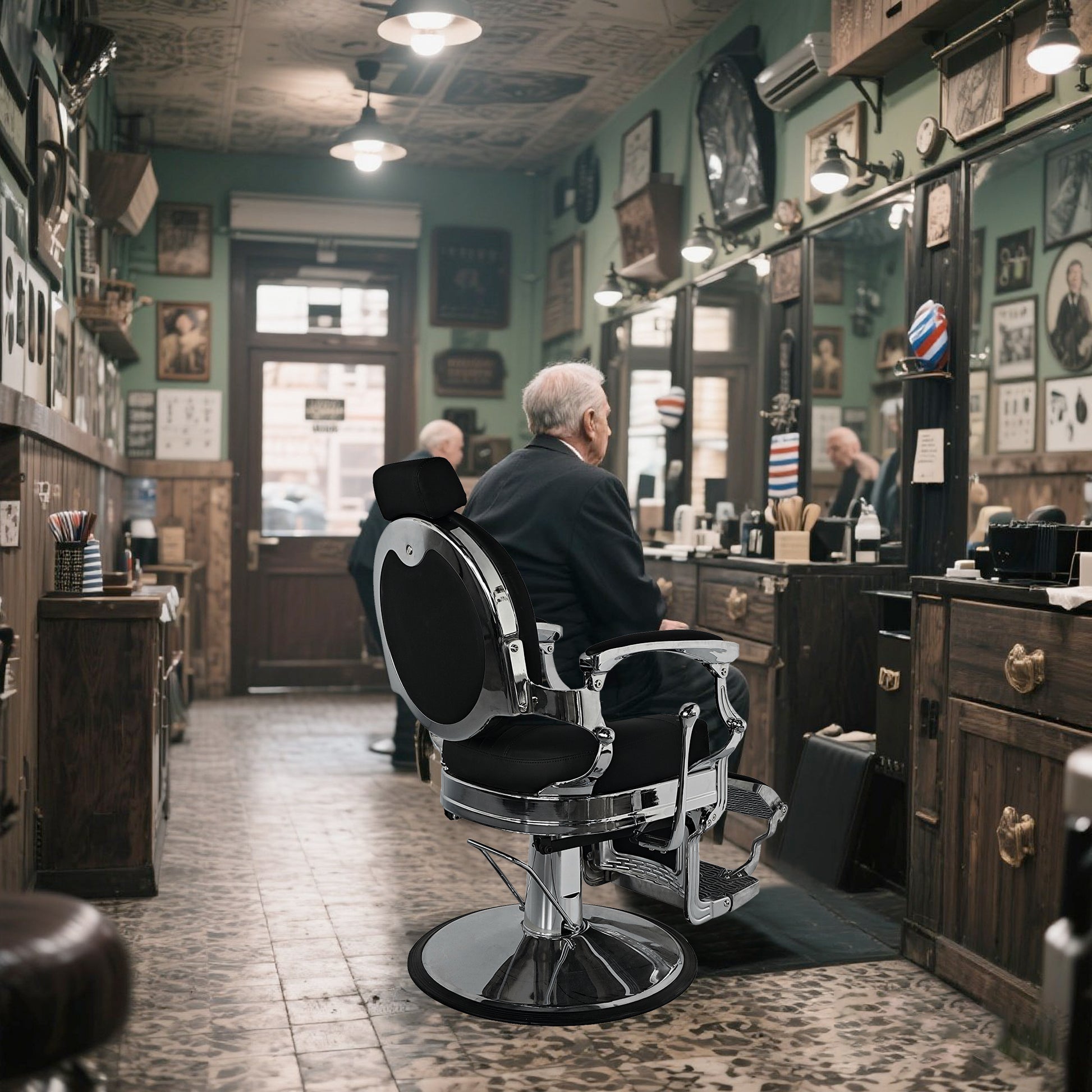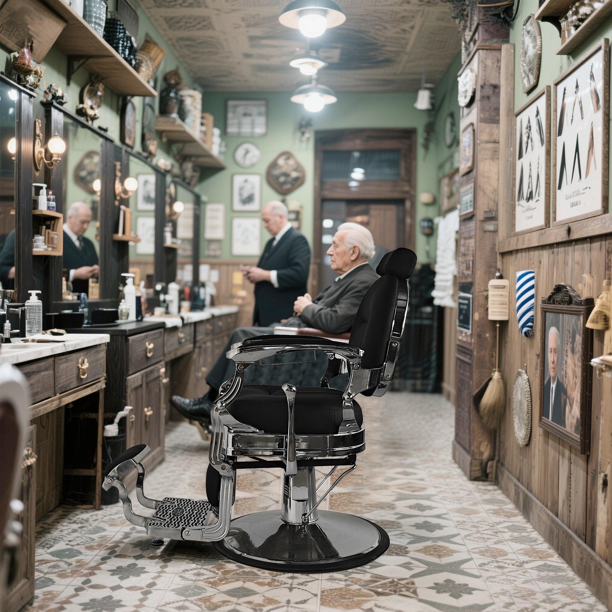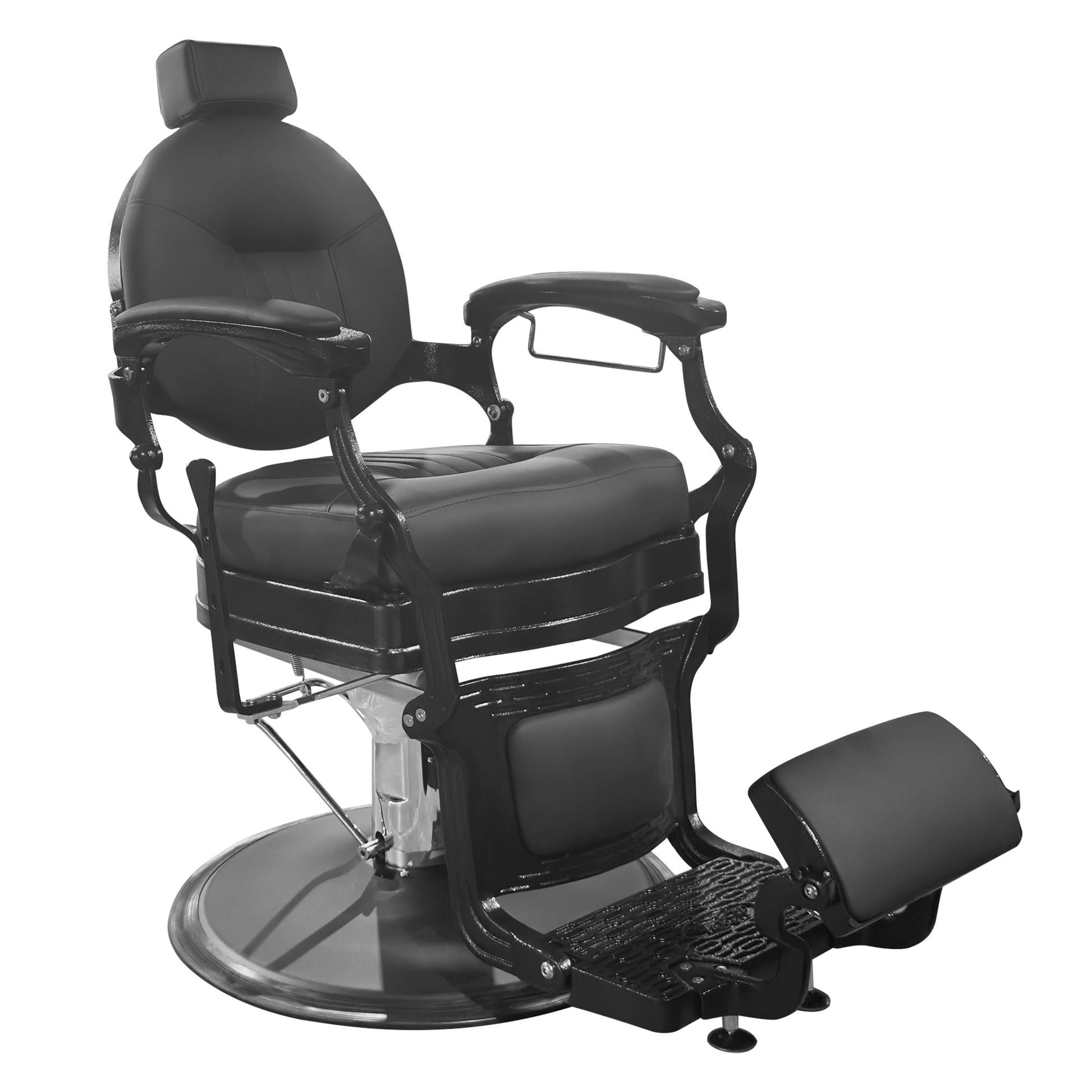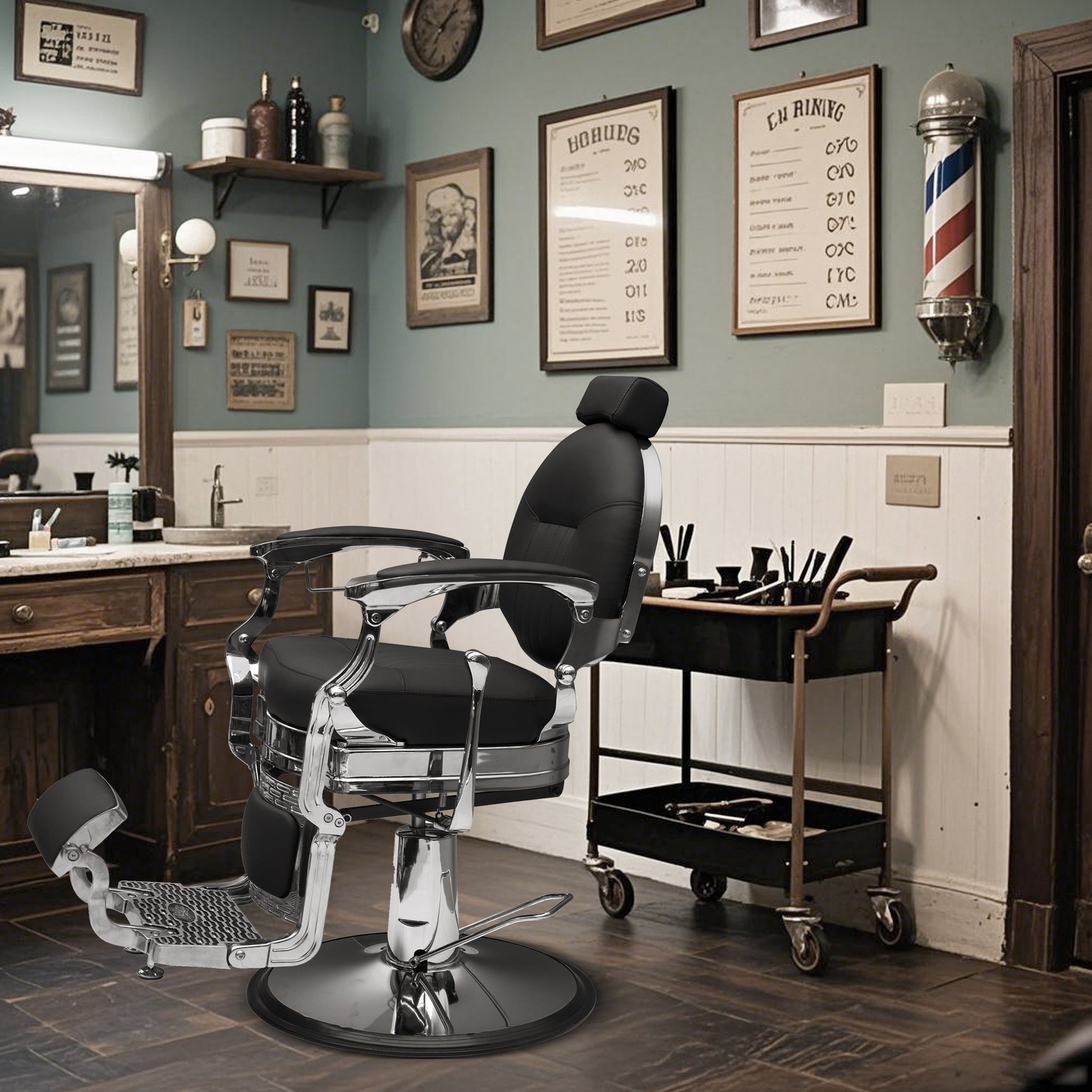 - Vintage Barber Chair - This hydraulic barber chair captures the timeless elegance of vintage design, creating a memorable experience for your clients. With tufted upholstery, a rounded backrest, a towel bar, an intricately embossed footrest, and a flip-style footrest, it embodies classic antique aesthetics.